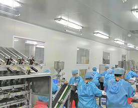 干净的走廊每天多次清洁消毒避免把细菌带入其他生产环节。10万级净化车间。