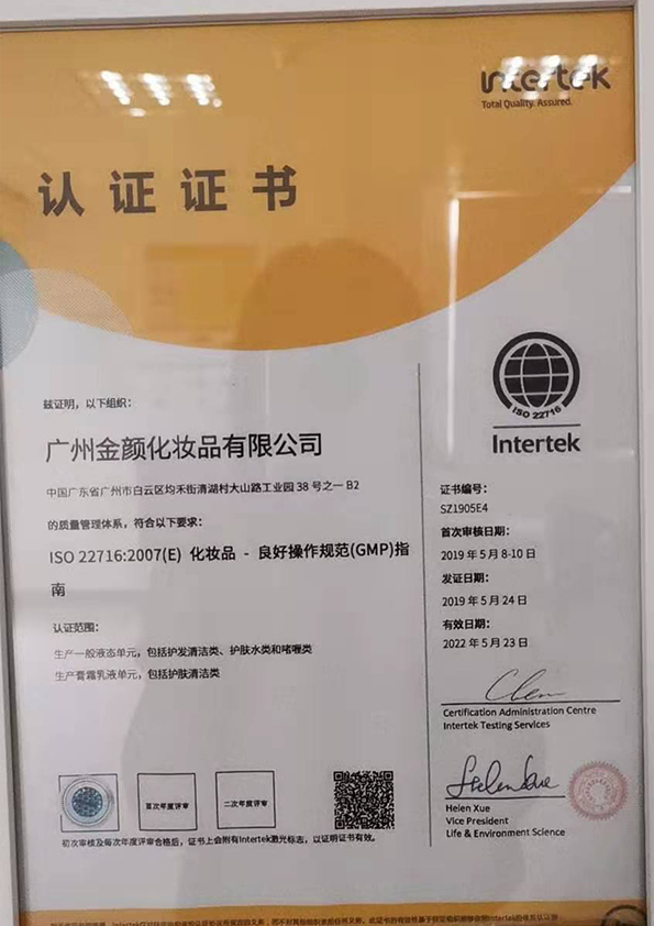 ● 通过了ISO22716、GMPC质量管理体系认证