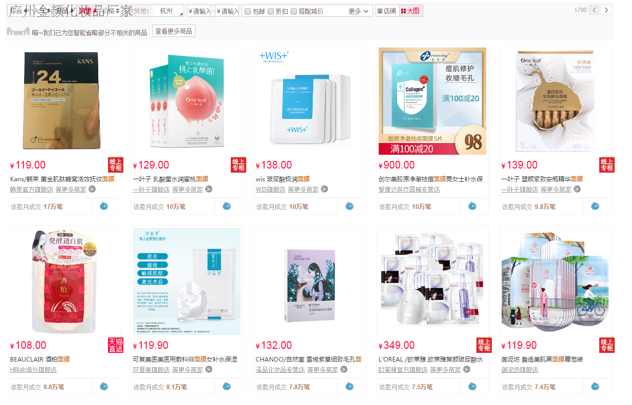 从上面图中,我们可以看到上,面膜品牌中,销量榜排名前十的的,玻尿酸面膜oem的品牌就有两个,销量单都是7W+。销售数据就可以体现出消费者对这款产品的热爱度。